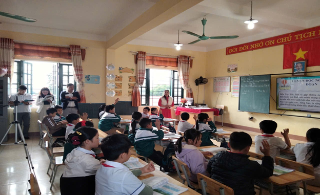 Trong phần dự giờ minh họa tiết dạy, tiết 1: Môn Tiếng Anh lớp 3 do cô giáo Hoàng Thị Huyền; tiết 2 môn Tiếng Anh lớp 4 do cô giáo Triệu Thị Thanh Lâm - GV trường TH số 2 Kim Sơn thực hiện. Tiết 3: Môn Toán lớp 3 do cô giáo Hoàng Thị Hiền; tiết 4 môn Lịch Sử - Địa Lý lớp 5 do cô giáo Lê Thị Tươi - GV trường PTDTBT TH Bảo Hà thực hiện, giáo viên được quan sát việc vận dụng linh hoạt nhiều kỹ thuật dạy học tích cực như khăn trải bàn, mảnh ghép, hỏi – đáp theo cặp, đặt câu hỏi mở…; tăng cường hoạt động thực hành và trải nghiệm; kết hợp đánh giá thường xuyên qua quan sát, phản hồi kịp thời, tự đánh giá và đánh giá lẫn nhau của học sinh.